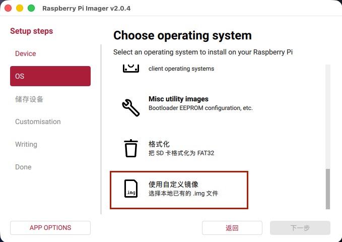 根据 Raspberry Pi Imager 的指引,完成镜像烧录的过程就好了。并没有什么难的。唯一需要注意的是,由于我们已经下载了 Ubuntu 镜像,所以这里要选「使用自定义镜像」。